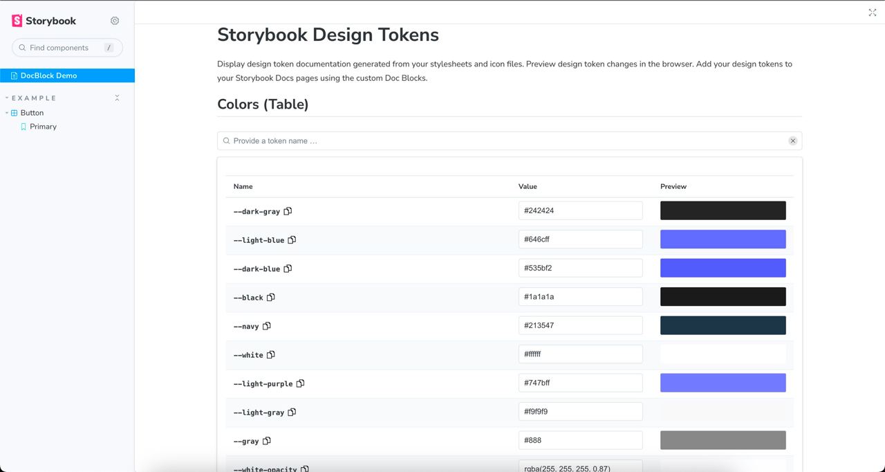 Демка состоит из 2 частей: 1️⃣ Автозамена цветов, шрифтов на соотвутствующие переменные с помощью stylelint-declaration-strict-value 2️⃣ Отображение всех этих переменных в storybook с помощью storybook-design-token